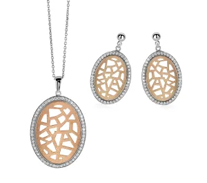 Orphelia ‘Lyra’ Dames 925 Sterling Zilveren Set: Ketting + Armband + Oorbellen – Zilver/Roze SET-7390