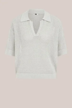 WE Fashion – Dames gebreide polo met opengewerkte structuur – Regular fit – Zilver – Biologisch katoen –