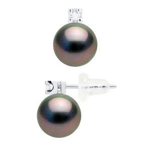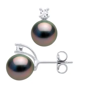 Oorbellen Prestige – Diamanten 0,04 ct – in Wit Goud 750 en Echte Gecontroleerde Tahiti Parel Ronde 8-9 mm