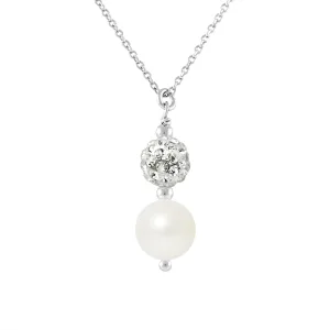 Ketting stropdas parel wit zoetwatercultuur en kristal preciosa zilver 925