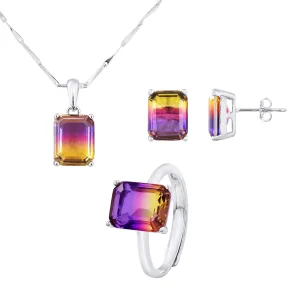 Ketting set, oorbellen en verstelbare ring kristal geel paars zilver 925 – Anais