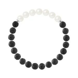 Armband Love Links van gedraaid nylon in zwarte kleur versierd met een echte gekweekte Tahiti-parel van 8-9 mm omringd