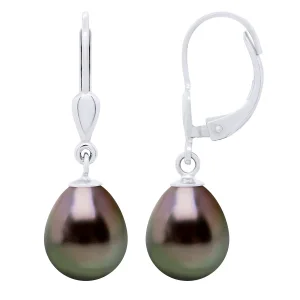 Oorbellen van 375 Wit Goud en Echte GeCultiveerde Tahiti Parel Paar 9-10 mm