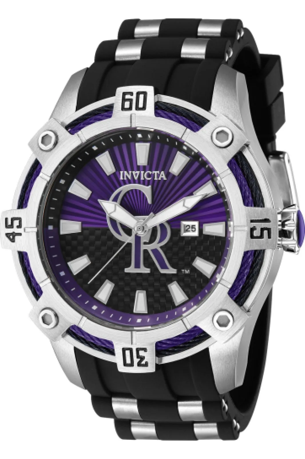 Invicta MLB – Colorado Rockies 43267 Heren Horloge – Quartz Uurwerk – Roestvrij Staal met paarse Wijzerplaat – 52mm