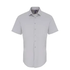 Premier Heren Poplin Stretch Overhemd met Korte Mouwen (Zilver)