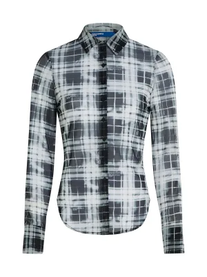 KARL LAGERFELD JEANS Blouse ‘Check Mesh’ zwart / wit