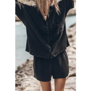 Mikuta The Dark Towelling Co-ord Shirt Black
