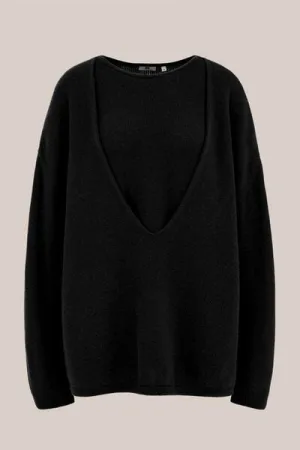 WE Studio – Dames trui met lage V-hals – Regular fit – Zwart – Wol –