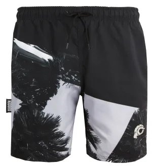 Heren Zwemshort met Palmpatroon Wit Zwart