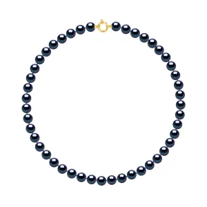 Rank ketting PRINCESS zoetwaterparels Ronde 9-10 mm Sluiting Black Luxury Yellow Gold