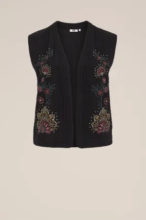 WE Fashion – Dames gilet met embroideries – Curve – Regular fit – Zwart – Katoen – Plus Size