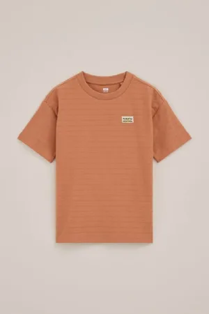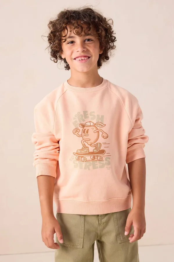WE Fashion – Jongens T-shirt met print – Regular fit – Oranje – Katoen –