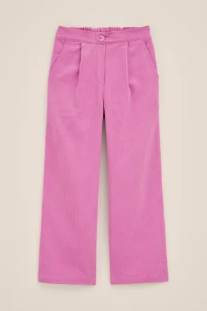 WE Fashion – Meisjes wide leg broek met ribstructuur – High waist – Fuchsia – Katoen –
