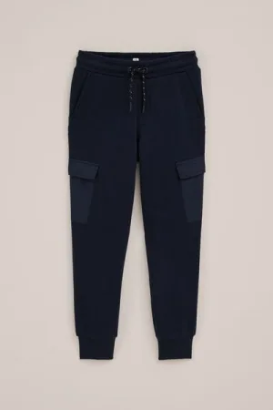 WE Fashion – Jongens regular fit joggingbroek met cargozakken – Regular fit – Donkerblauw – Katoen –