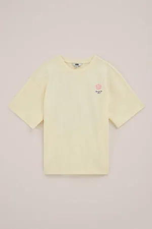 WE Fashion – Meisjes oversized T-shirt met print – Oversized – Lichtgeel – Katoen –