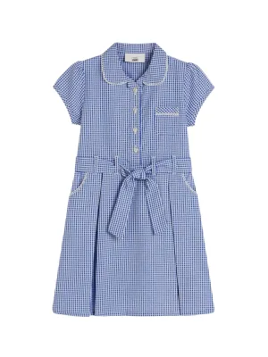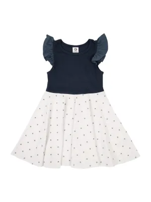 Lil’Atelier Jurk ‘NMFGAYO SEL’ lichtblauw / olijfgroen / natuurwit