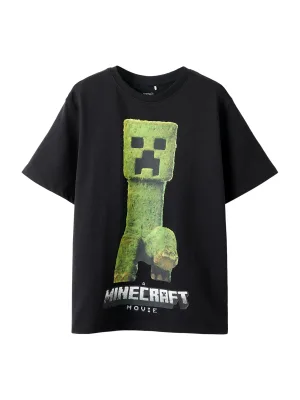NAME IT Shirt ‘NKMNORAN MINECRAFT’ grijs / groen / zwart / wit