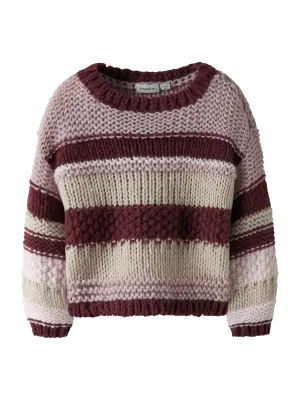 NAME IT Trui ‘NMFOLINE’ ecru / oudroze / wijnrood