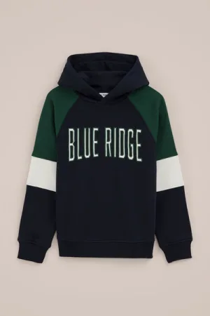 Blue Ridge – Jongens hoodie met colourblock – Regular fit – Marineblauw – Katoen –