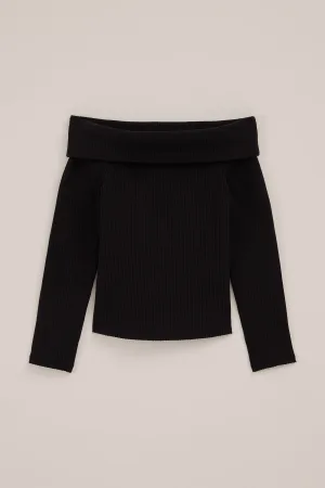 WE Fashion – Meisjes off-shoulder top – Regular fit – Zwart – Katoen –