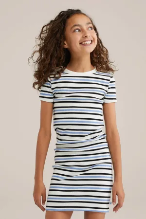 WE Fashion t-shirtjurk lichtblauw/zwart/wit