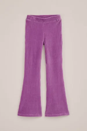 WE Fashion – Meisjes velvet flared legging van ribstof – Regular fit – Paars – Katoen –
