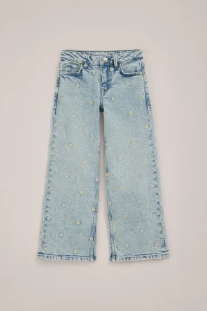 Blue Ridge – Meisjes wide leg jeans met embroideries – Relaxed Fit – Lichtblauw – Katoen –