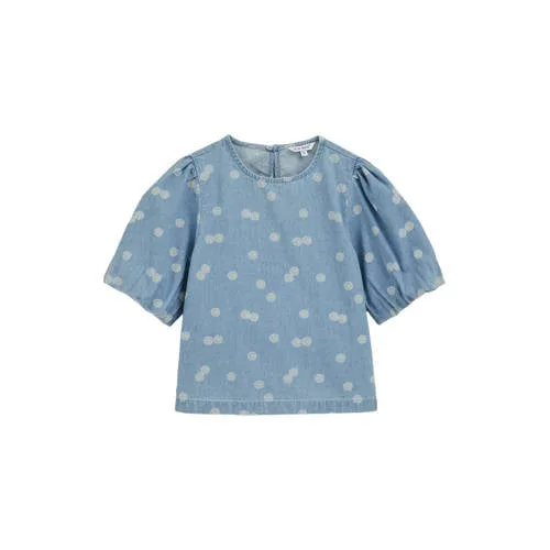 Blue Ridge – Meisjes high waist denim short met print – High waist – Lichtblauw – Katoen –