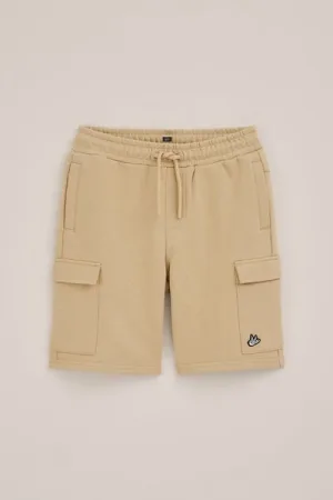WE Fashion – Jongens regular fit cargoshort met embroidery – Regular fit – Beige – Katoen –