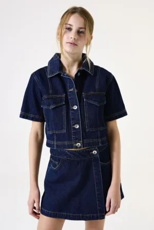 Looxs Revolution Blue denim gilet swirl voor meisjes in de kleur