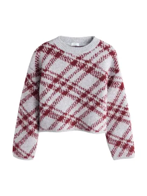 Next Trui lichtgrijs / bourgogne