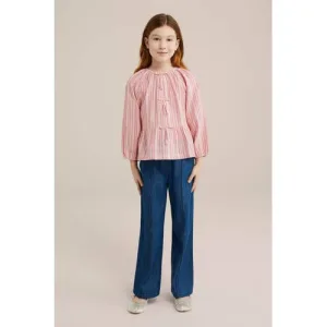 WE Fashion – Meisjes oversized T-shirt met print – Oversized – Lichtgeel – Katoen –