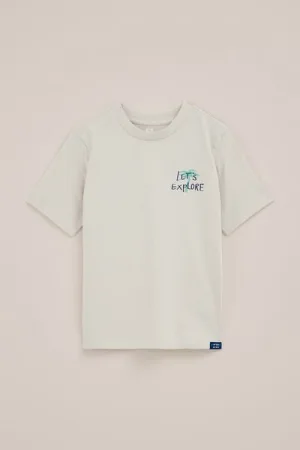 WE Fashion – Jongens T-shirt met print – Regular fit – Beige – Katoen –