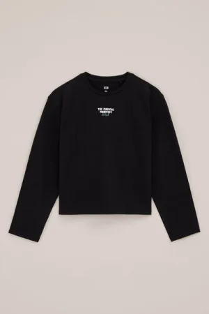 WE Fashion – Meisjes T-shirt met opdruk – Regular fit – Zwart – Katoen –