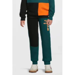 Orange Stars colourblock fleece joggingbroek Adam met printopdruk teal