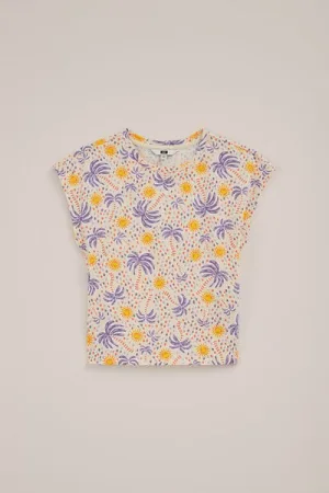 WE Fashion – Meisjes T-shirt met print – Regular fit – Beige – Katoen –