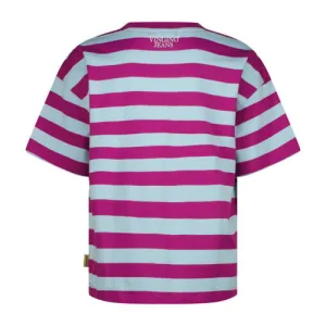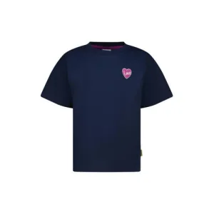 Vingino high waist flared broek Stexie met all over print blauw/grijs
