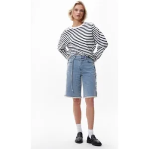 Catwalk Junkie Loose Fit Fringed Jorts Starlight Blue