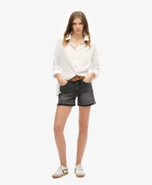 Superdry Vrouwen Cut-off Short met Middelhoge Taille Wit