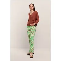 Summum Woman Cropped Flared Pants Swirl Print Stretch Twill Island Green