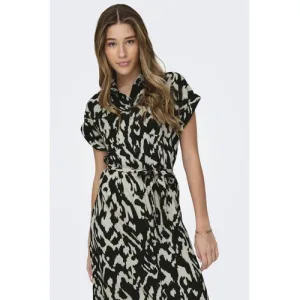 ONLY blousejurk ONLHANNOVER met all over print en ceintuur zwart/ grijs