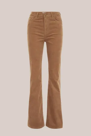 WE Fashion – Dames flared broek van ribstof – Regular fit – Lichtbruin – Katoen –