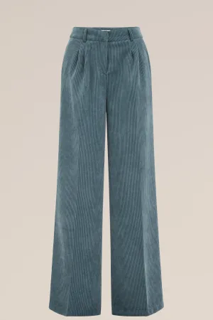 WE Fashion – Dames wide leg broek van corduroy – Regular fit – Petrol –