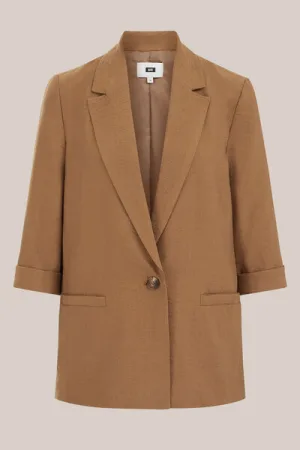 WE Fashion – Dames regular fit blazer met structuur – Regular fit – Lichtblauw – Viscose –