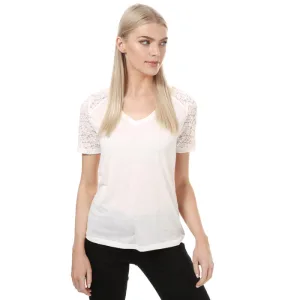 Jacqueline de Yong Stinne damestop met korte mouwen en kant, wit