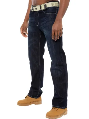 Enzo | Jeans met normale pasvorm en riem voor heren – donkerblauw