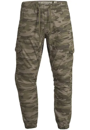 INDICODE JEANS Cargobroek ‘Levi’ lichtbruin / kaki / donkergroen