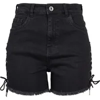 Urban Classics Ladies Highwaist Denim Lace Up Shorts Black Washed