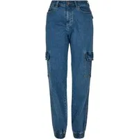 Urban Classics Ladies Organic Stretch Denim Cargo Pants Clearblue Washed
