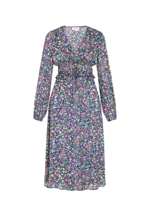 IZIA Jurk beige / donkerblauw / geel / donkergroen